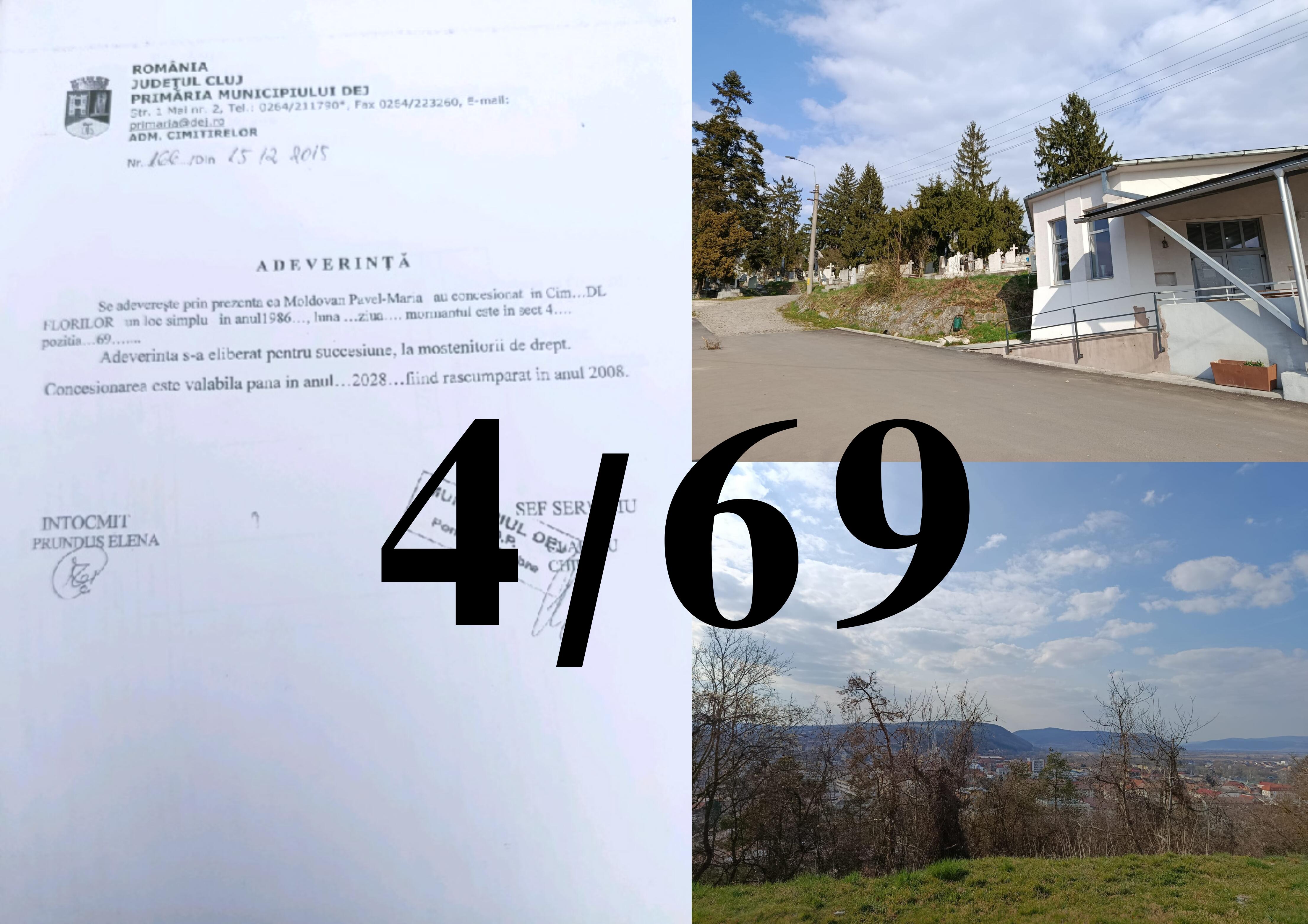 Descriere Loc de veci - Morminte: Dublu. Aleea din stanga nu departe, foarte vechi, mostenire bunici. Amenajat stare buna. Cedare dreptul de concesiune. Sect 4 / 69